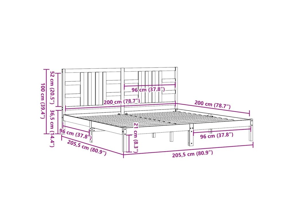 - Rozměry rámu postele: 205,5 x 205,5 x 31 cm (D x Š x V)
