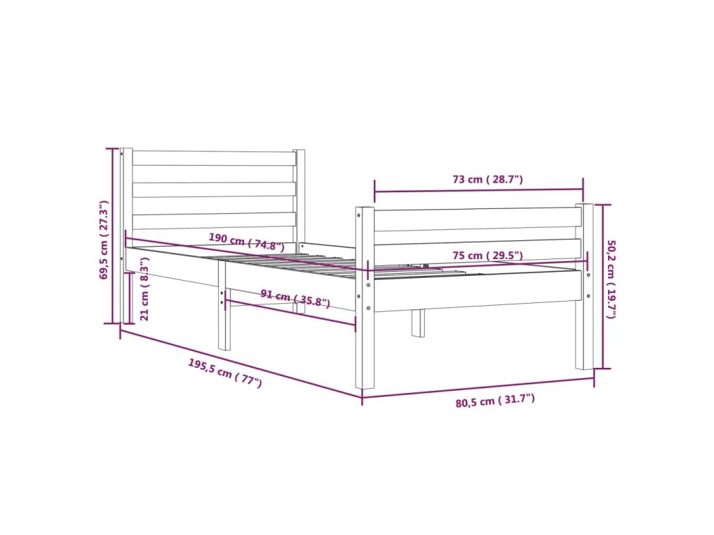 - Tento rám postele je vhodný pro matrace o rozměrech 75 x 190 cm (2FT6 Small Single)