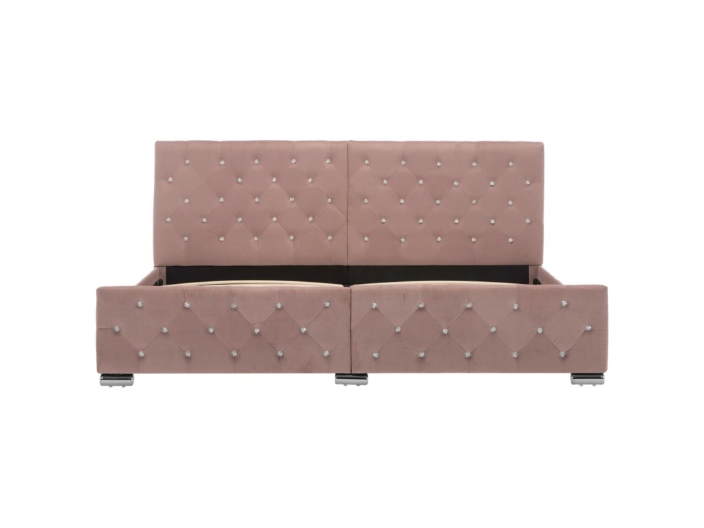 Rám postele se vyznačuje nenápadným, a přitom půvabným designem, který do vaší ložnice vnese elegantní šarm. Rám postele je vyrobený ze dřeva a oceli, je tedy mimořádně pevný a má dlouhou životnost. Kovové nohy přidávají posteli na odolnosti. Postelový rám je navíc čalouněný odolným sametem, vyloženě tedy svádí k odpočinku a snadno se čistí. Tato postel je vhodná pro matrace o rozměrech 180 x 200 cm.