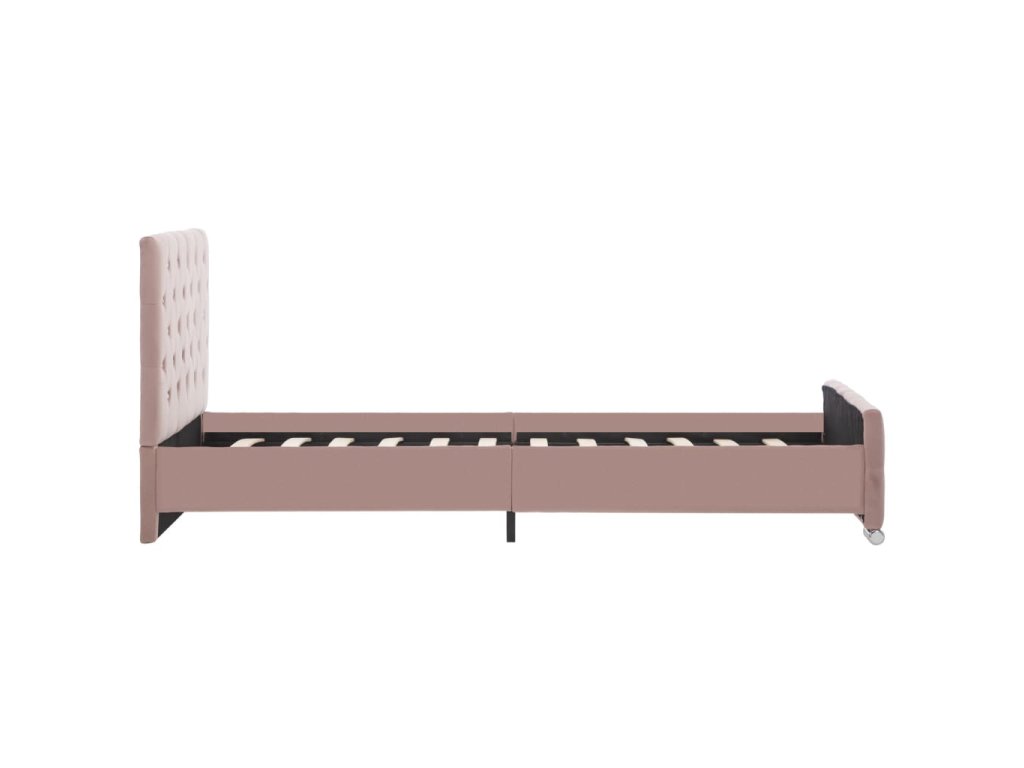 Rám postele se vyznačuje nenápadným, a přitom půvabným designem, který do vaší ložnice vnese elegantní šarm. Rám postele je vyrobený ze dřeva a oceli, je tedy mimořádně pevný a má dlouhou životnost. Kovové nohy přidávají posteli na odolnosti. Postelový rám je navíc čalouněný odolným sametem, vyloženě tedy svádí k odpočinku a snadno se čistí. Tento rám postele je vhodný pro matrace o rozměrech 90 x 200 cm.