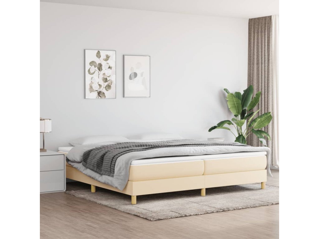 Rám postele s boxspringem krémový 200 x 200 cm textil 3120643