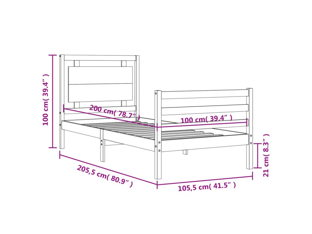 Rám postele s čelem 100 x 200 cm masivní dřevo 3194041