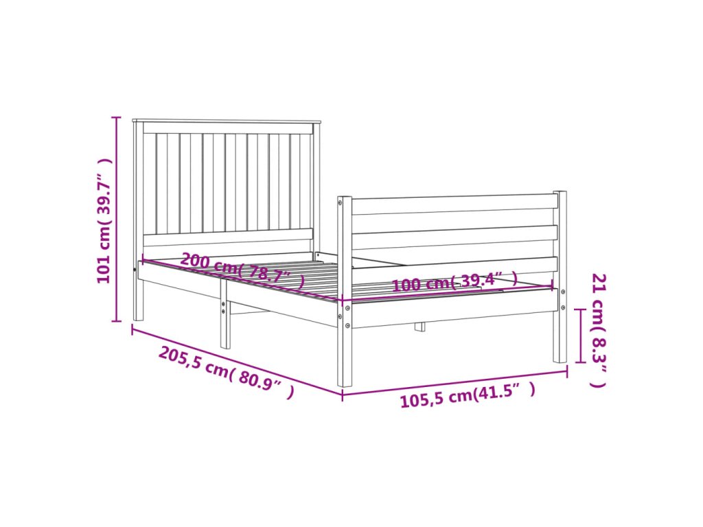 Rám postele s čelem 100 x 200 cm masivní dřevo 3194236