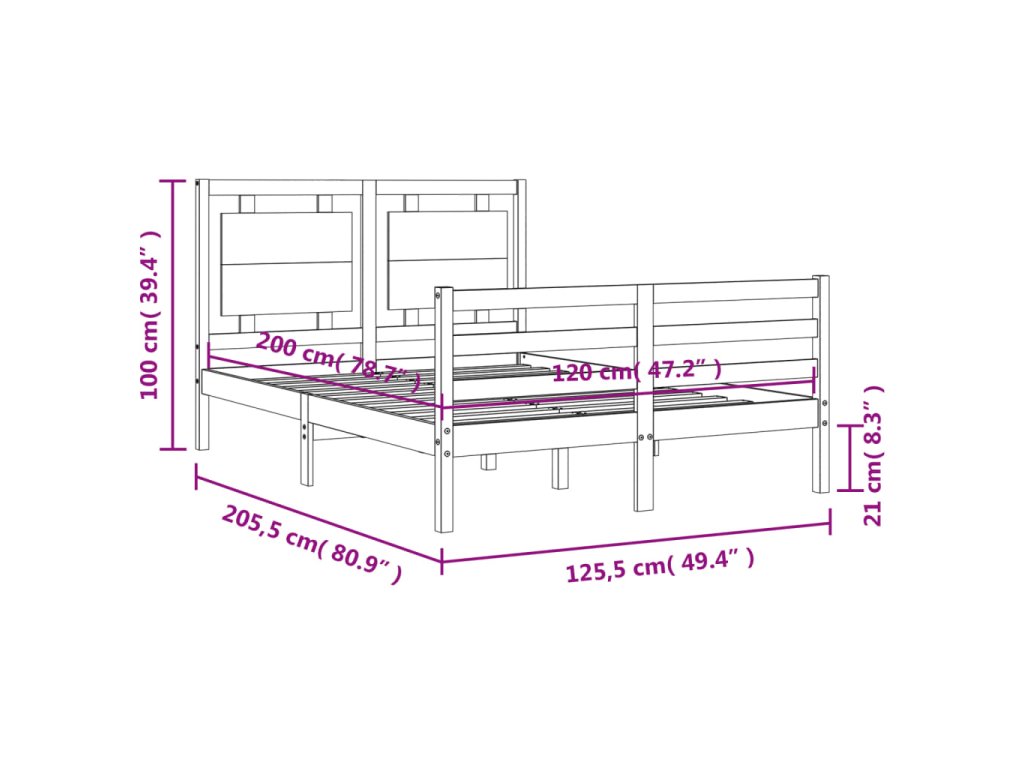 Rám postele s čelem 120 x 200 cm masivní dřevo 3194046