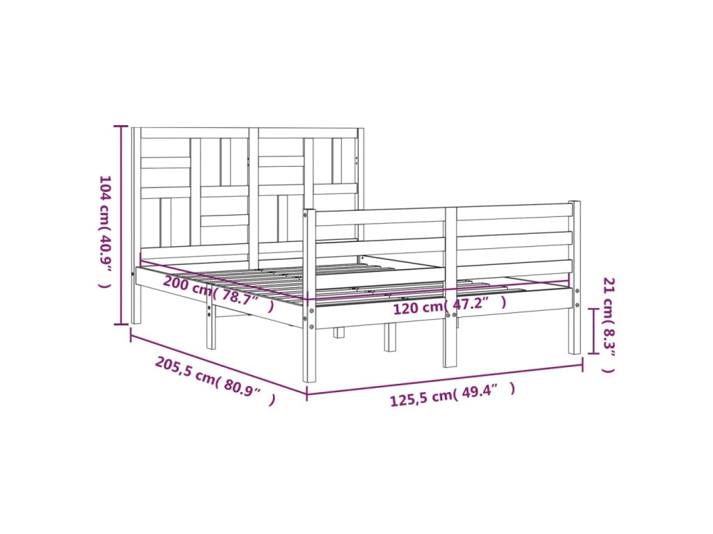 - Celkové rozměry postele: 205,5 x 125,5 x 104 cm (D x Š x V)