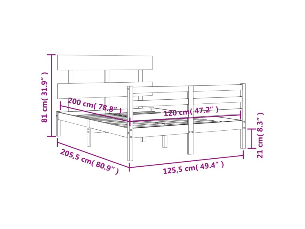- Celkové rozměry postele: 205,5 x 125,5 x 81 cm (D x Š x V)
