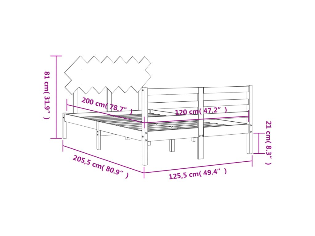 - Celkové rozměry postele: 205,5 x 125,5 x 81 cm (D x Š x V)