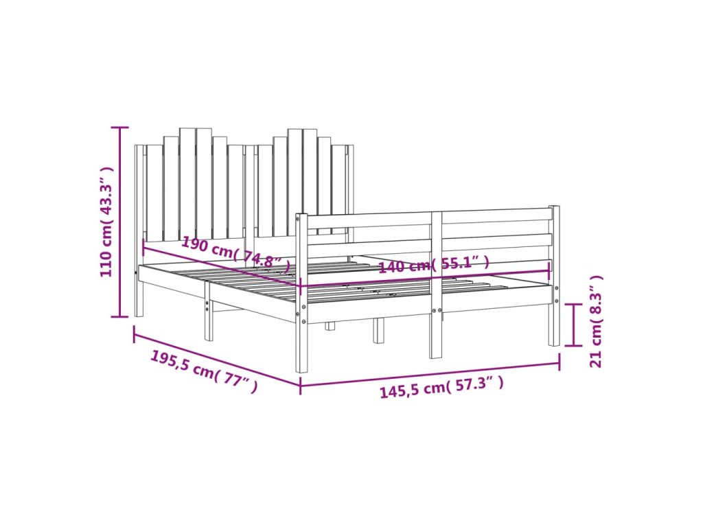 Rám postele s čelem 140 x 190 cm masivní dřevo 3194161