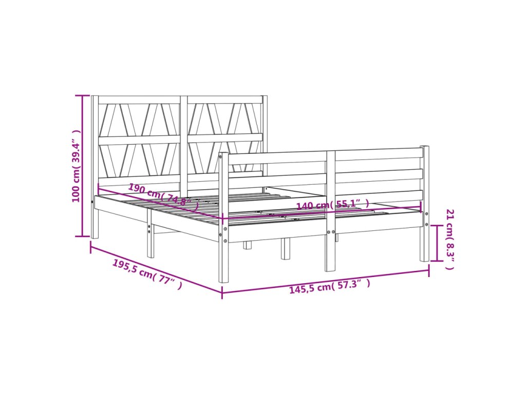 Rám postele s čelem 140 x 190 cm masivní dřevo 3194356