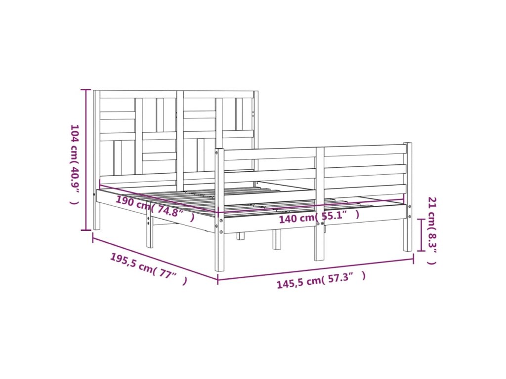 - Celkové rozměry postele: 195,5 x 145,5 x 104 cm (D x Š x V)