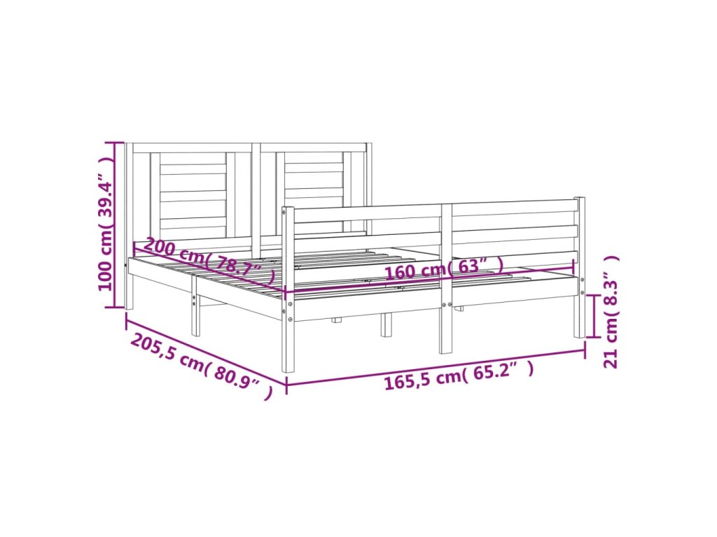 - Celkové rozměry postele: 205,5 x 165,5 x 100 cm (D x Š x V)