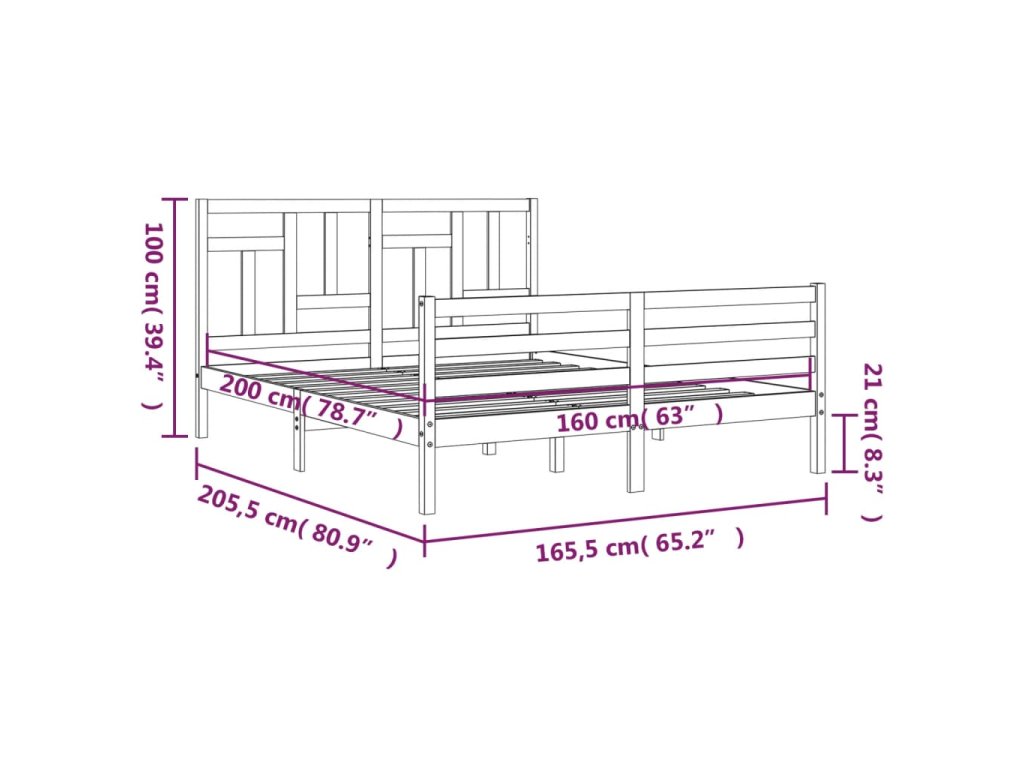 Rám postele s čelem 160 x 200 cm masivní dřevo 3194971