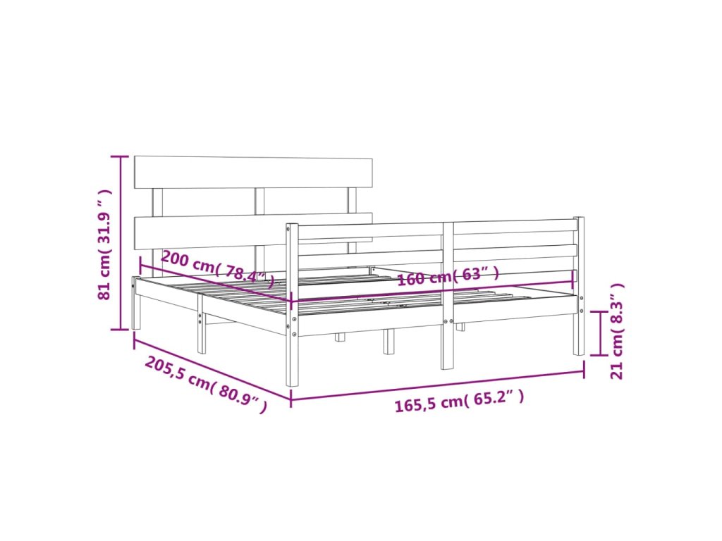 - Celkové rozměry postele: 205,5 x 165,5 x 81 cm (D x Š x V)