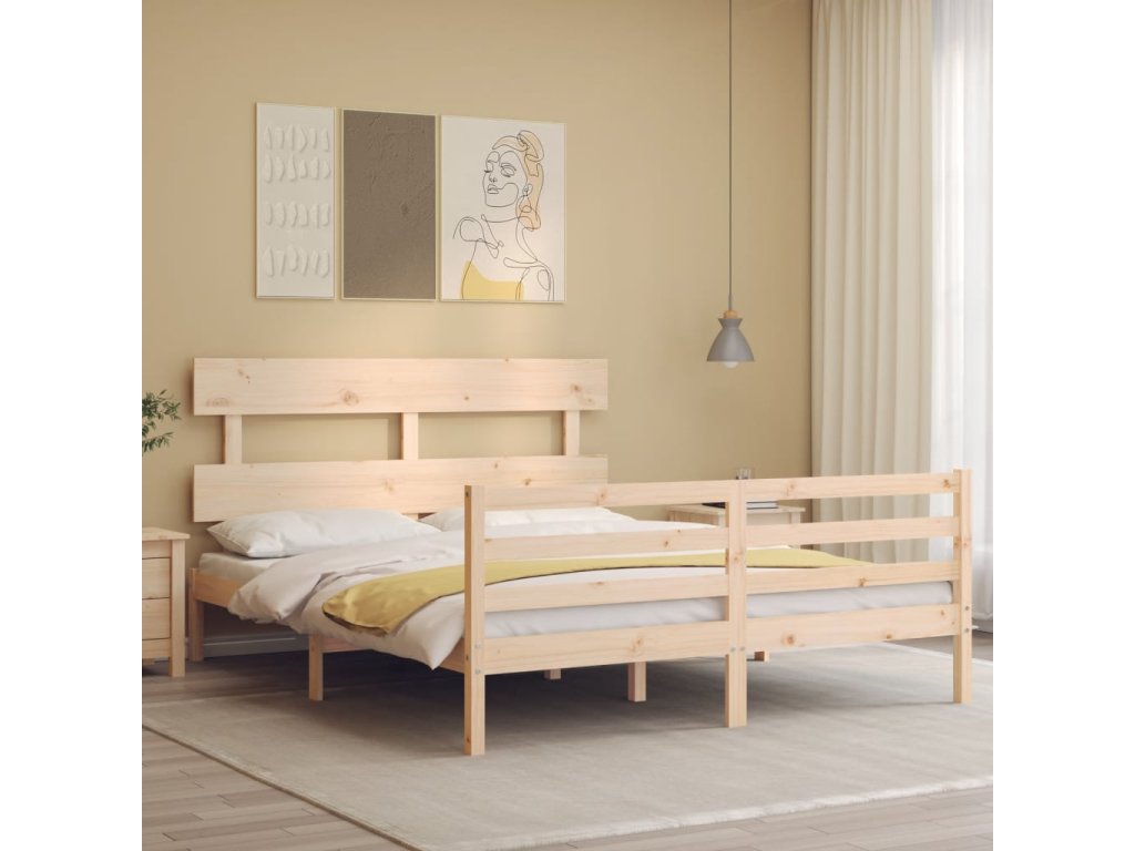 Rám postele s čelem 160 x 200 cm masivní dřevo 3195101