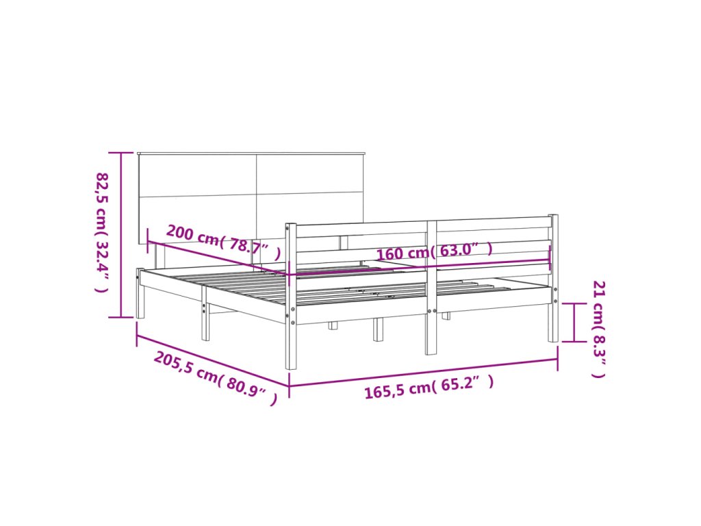 - Celkové rozměry postele: 205,5 x 165,5 x 82,5 cm (D x Š x V)