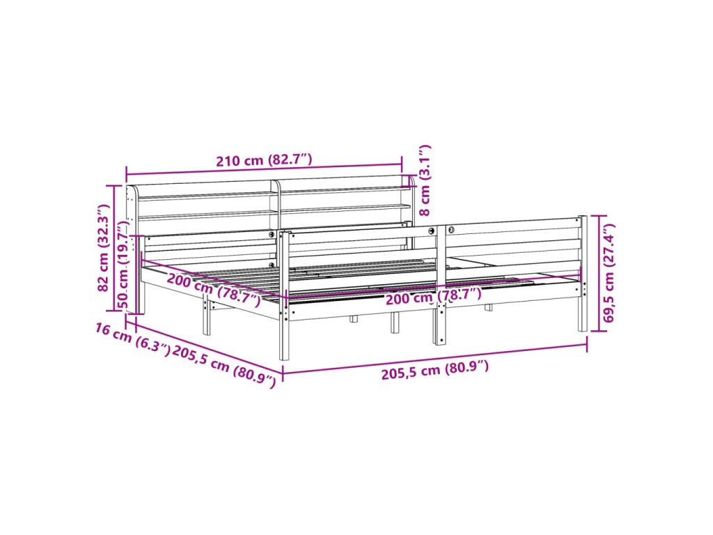 Rám postele s čelem 200 x 200 cm masivní borové dřevo 3306692