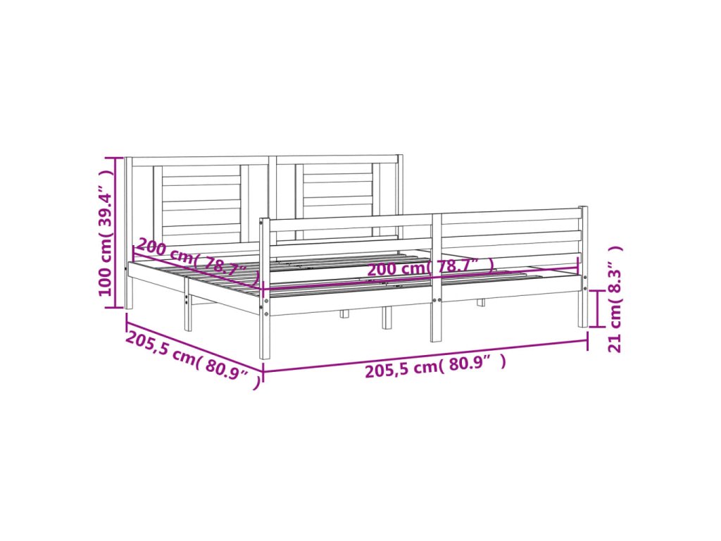 Rám postele s čelem 200 x 200 cm masivní dřevo 3194721