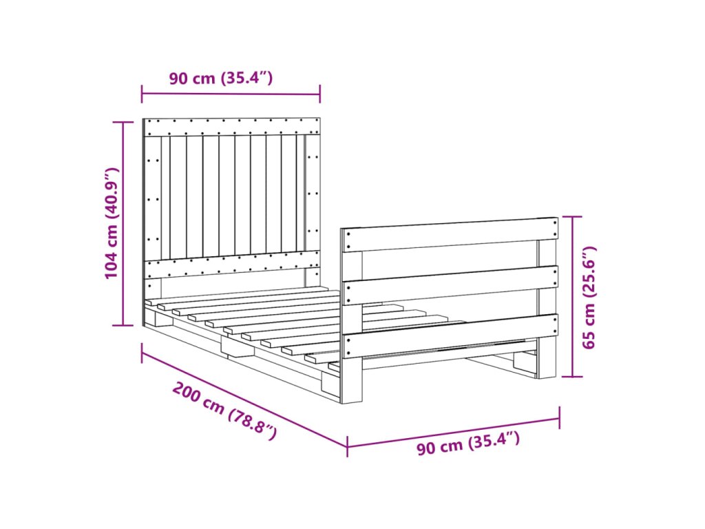 Rám postele s čelem 90 x 200 cm masivní borové dřevo 3281538