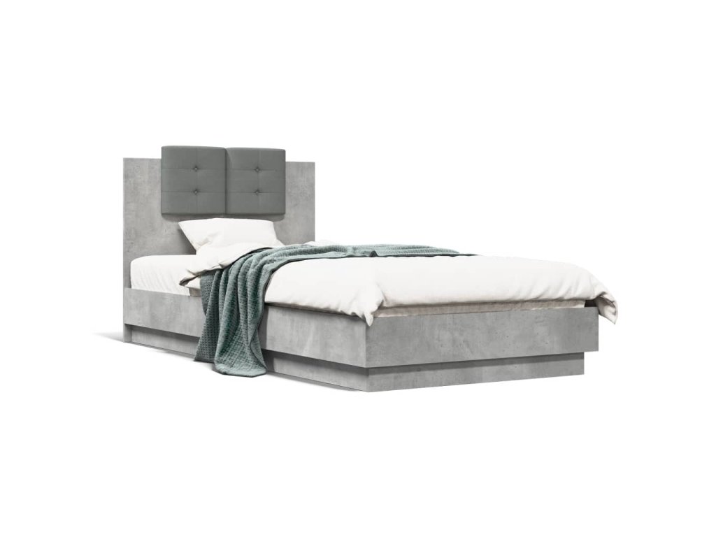 Rám postele s čelem a LED osvětlením betonově šedý 75 x 190 cm 3210069