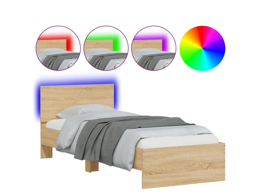 Rám postele s čelem a LED osvětlením dub sonoma 75 x 190 cm 838843