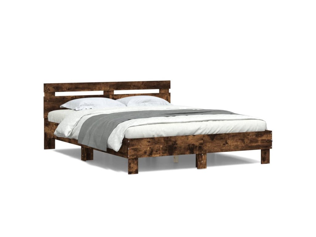 Rám postele s čelem a LED osvětlením kouřový dub 140 x 200 cm 3207550