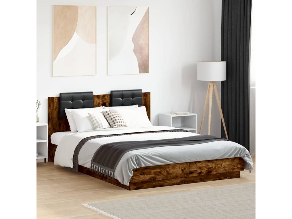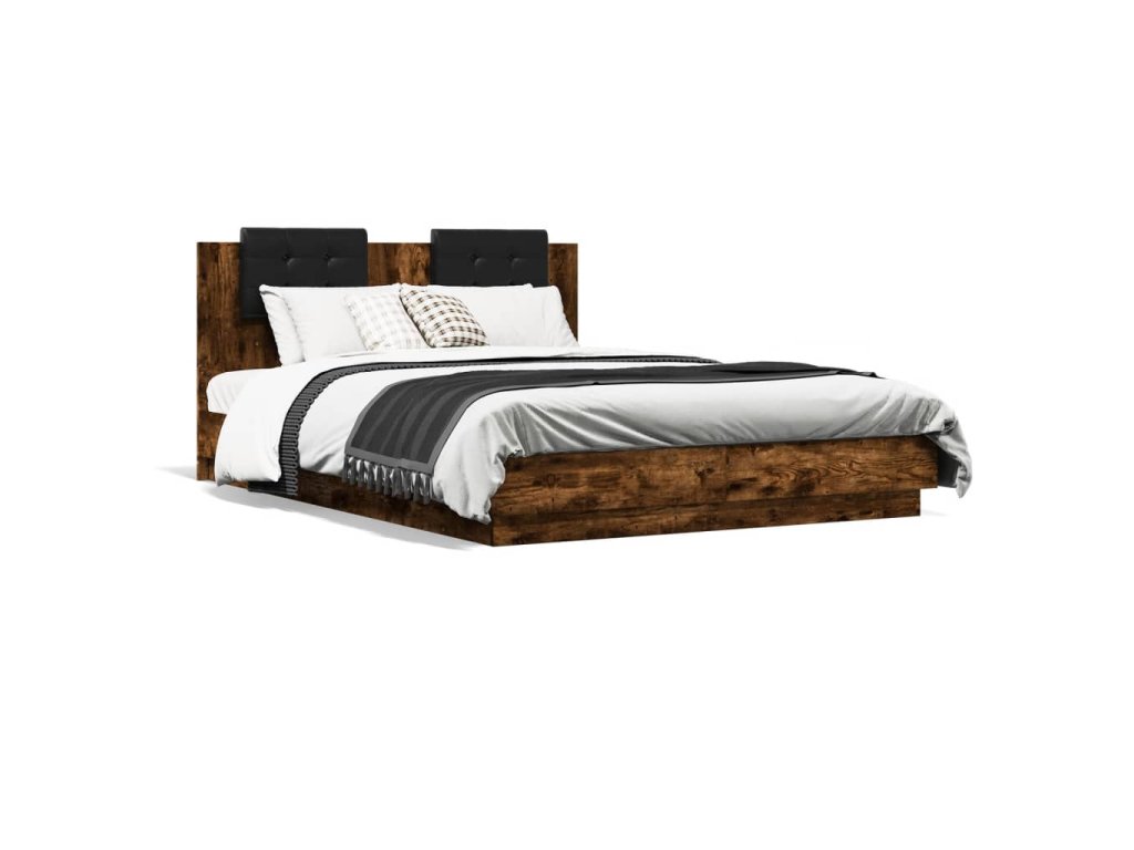 Rám postele s čelem a LED osvětlením kouřový dub 140x200 cm 3210014