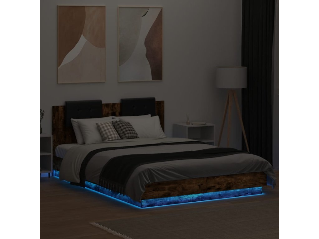 Rám postele s čelem a LED osvětlením kouřový dub 150x200 cm 3210007