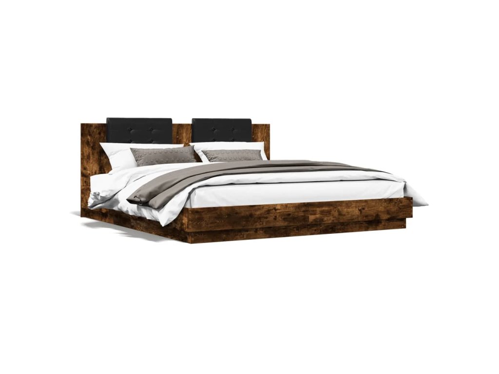 Rám postele s čelem a LED osvětlením kouřový dub 200x200 cm 3209986
