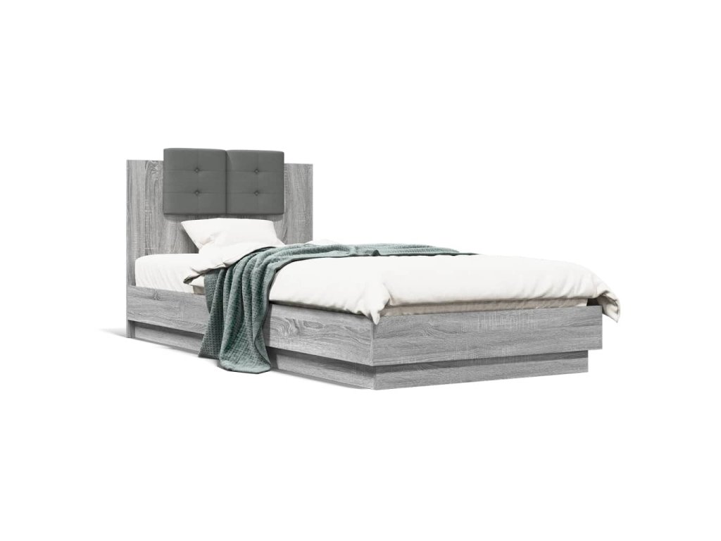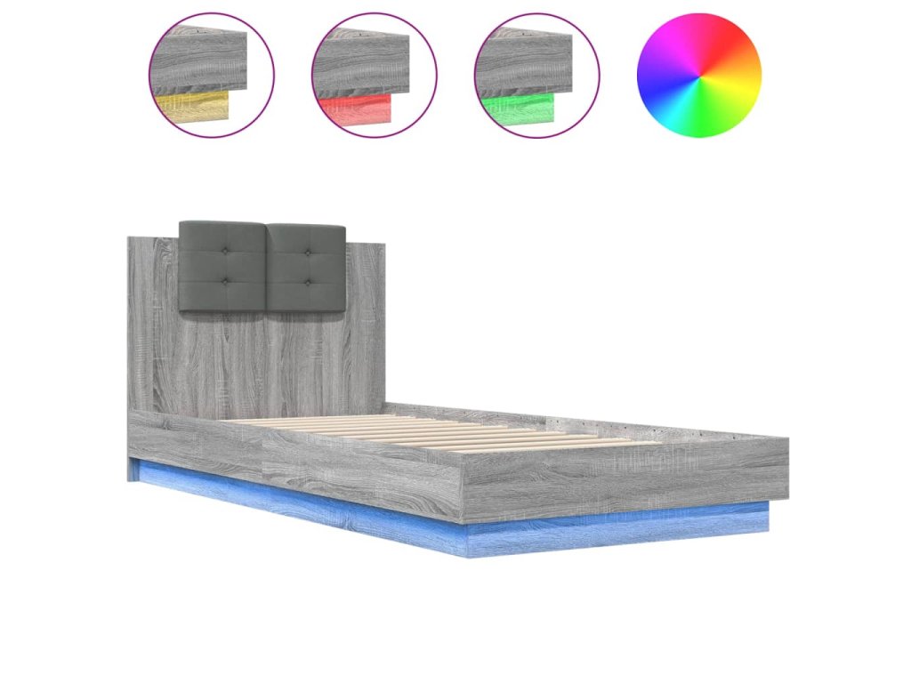 Rám postele s čelem a LED osvětlením šedý sonoma 100 x 200 cm 3210029
