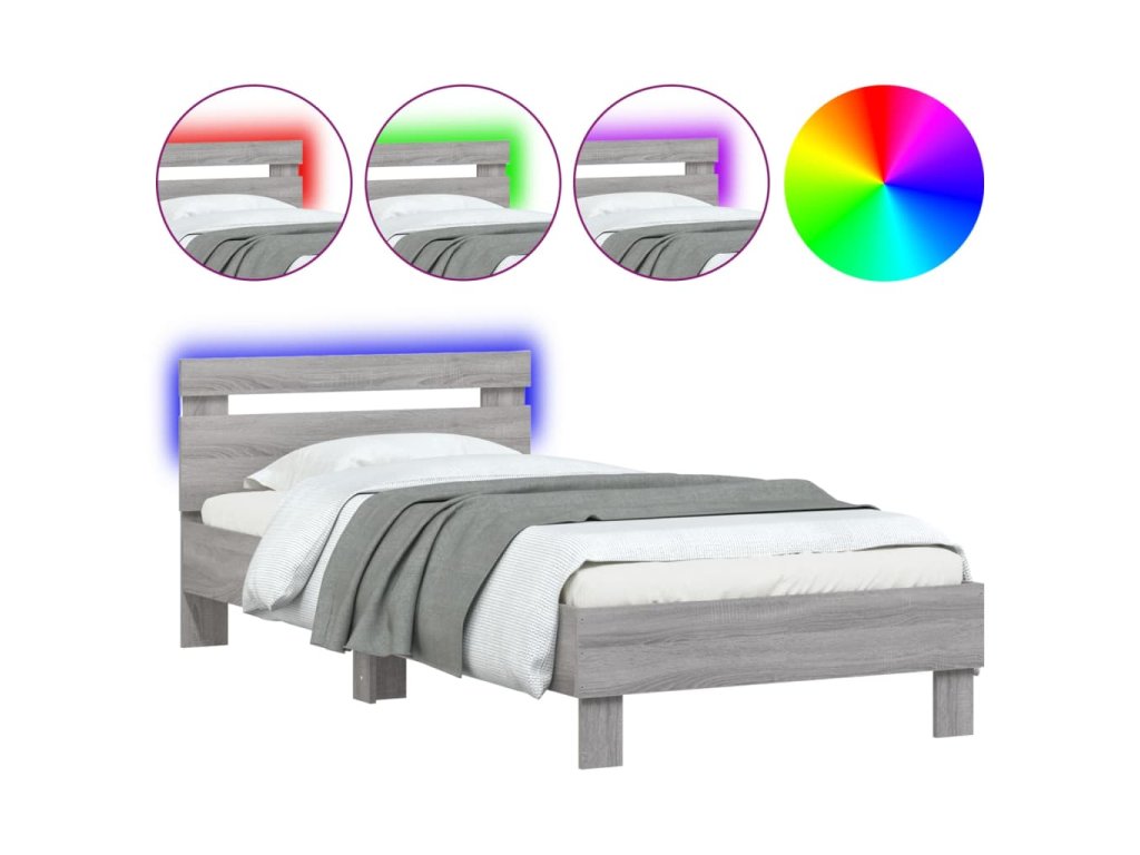 Rám postele s čelem a LED osvětlením šedý sonoma 90 x 200 cm 838720