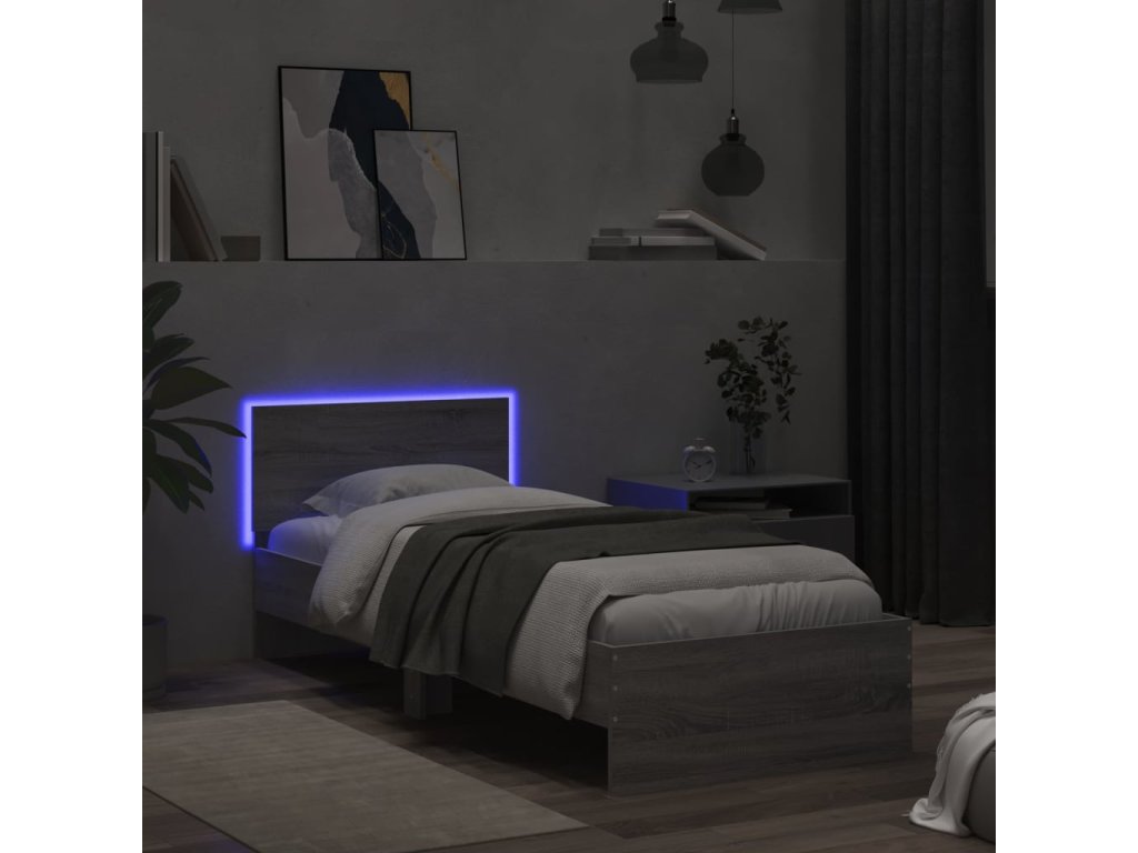 Rám postele s čelem a LED osvětlením šedý sonoma 90 x 200 cm 838811