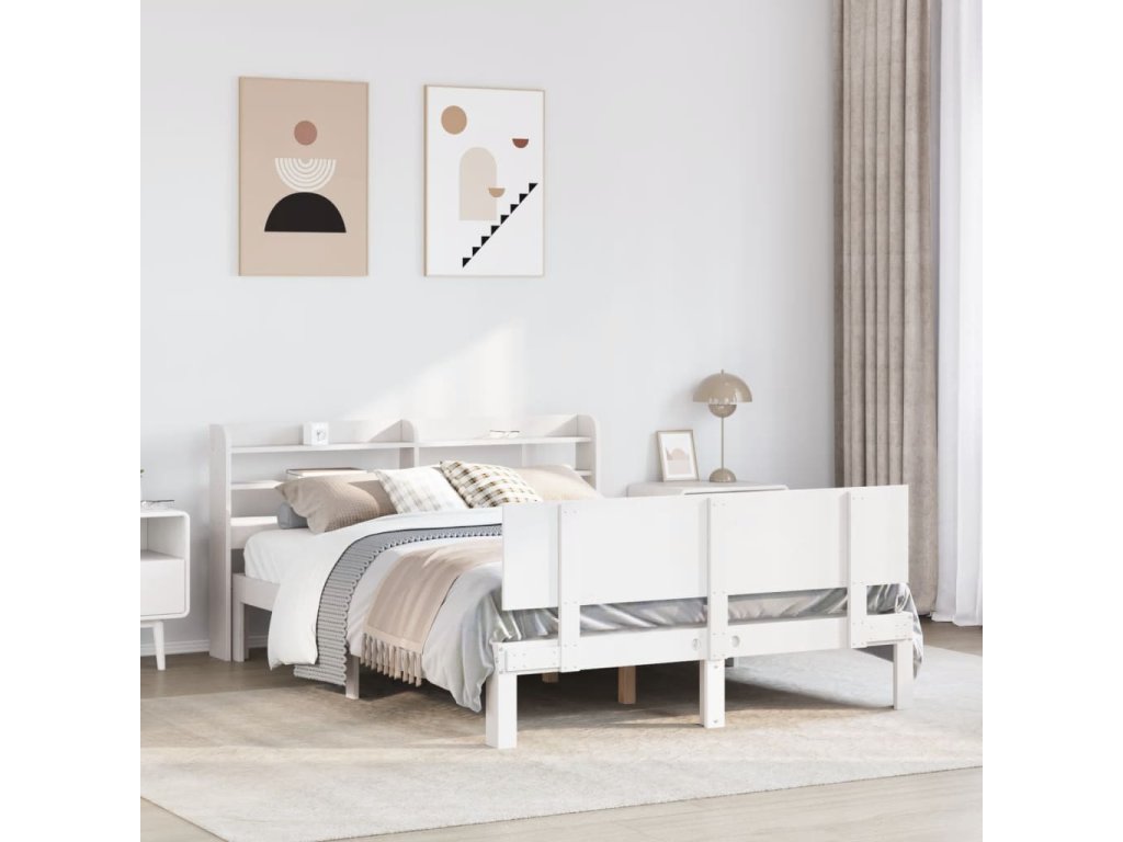 Rám postele s čelem bílý 120 x 190 cm masivní borovice 3306816