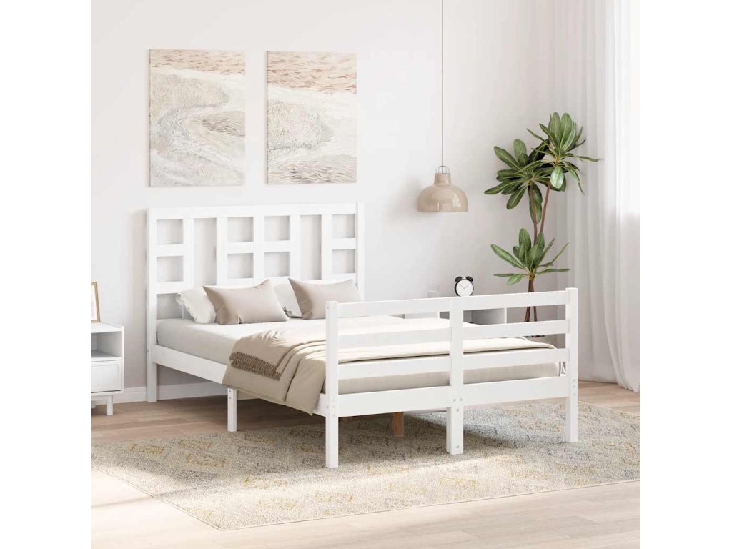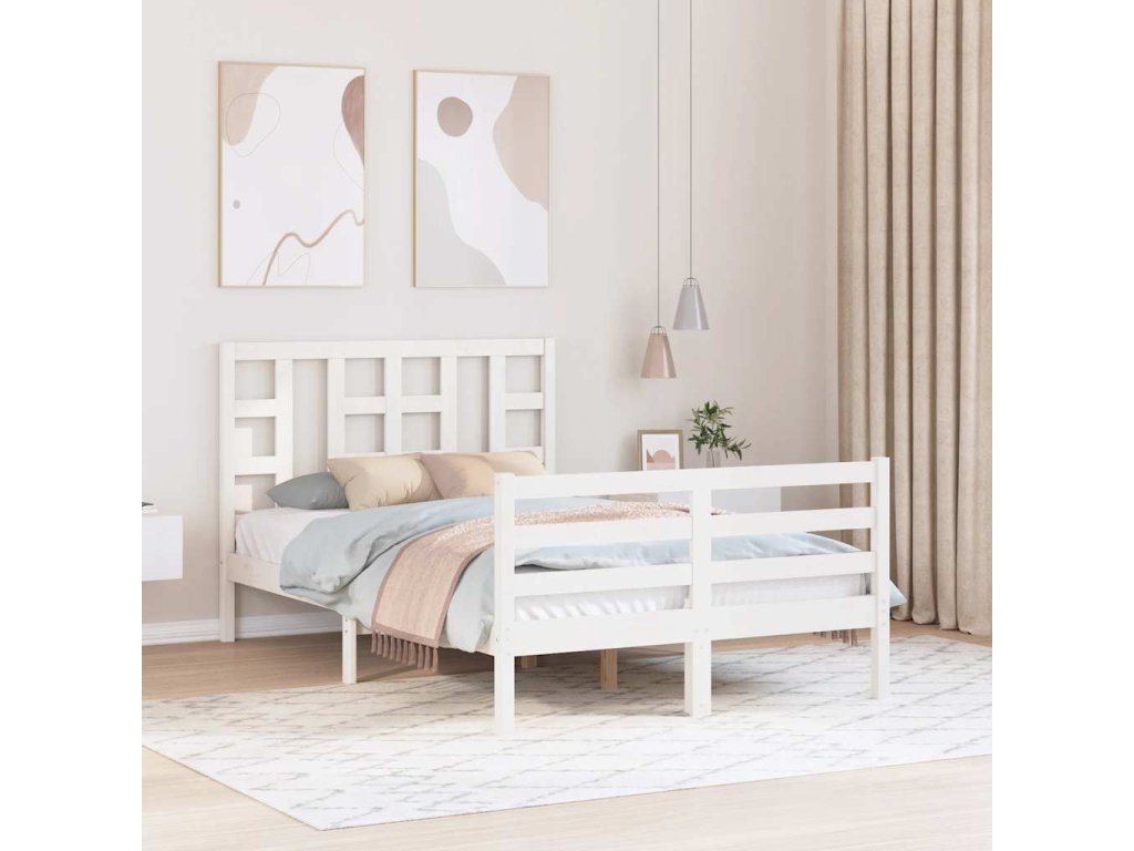Rám postele s čelem bílý 120 x 200 cm masivní dřevo 3193917