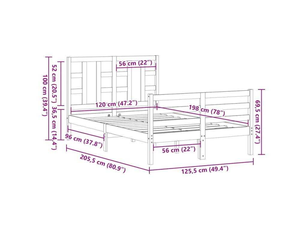 - Celkové rozměry postele: 205,5 x 125,5 x 100 cm (D x Š x V)