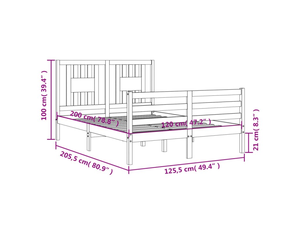 - Celkové rozměry postele: 205,5 x 125,5 x 100 cm (D x Š x V)