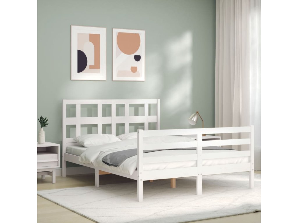Rám postele s čelem bílý 120 x 200 cm masivní dřevo 3194827