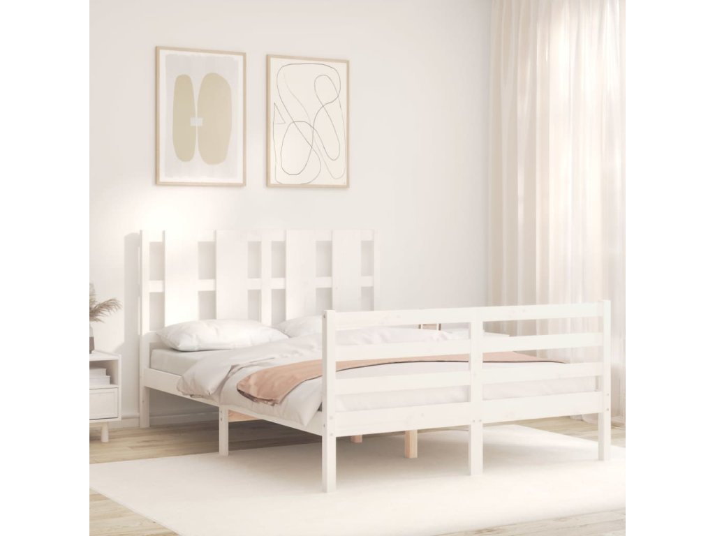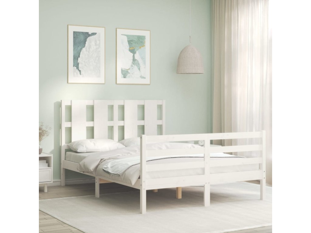 Rám postele s čelem bílý 140 x 190 cm masivní dřevo 3194097