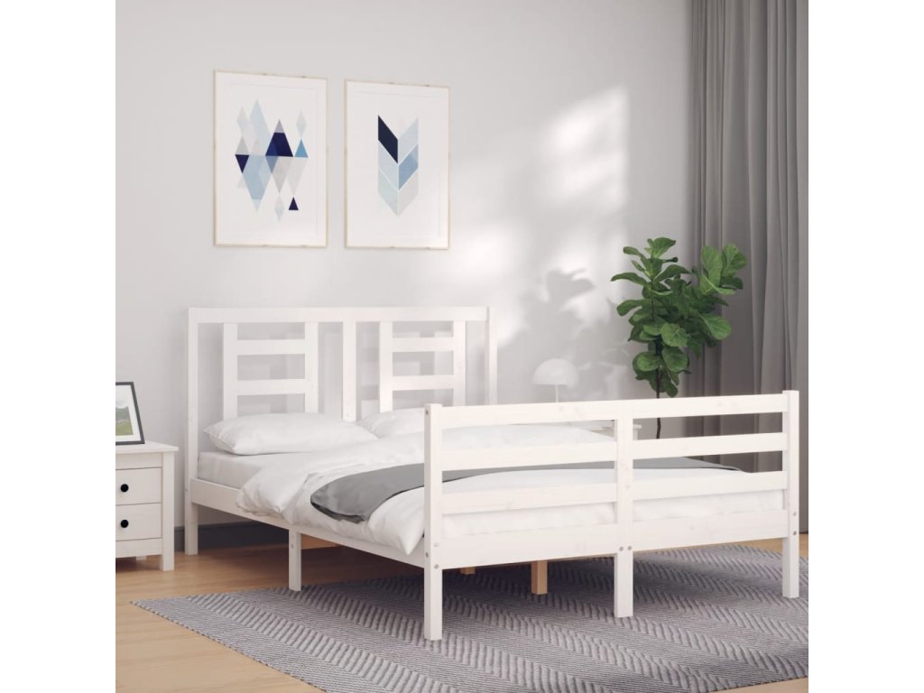 Rám postele s čelem bílý 140 x 190 cm masivní dřevo 3194682