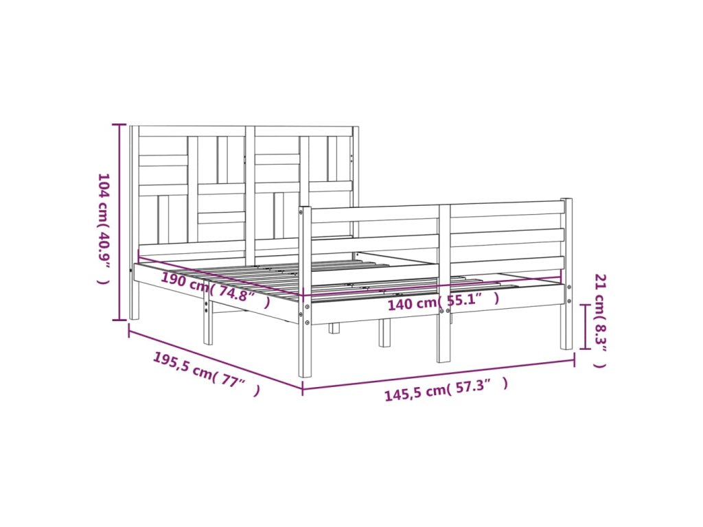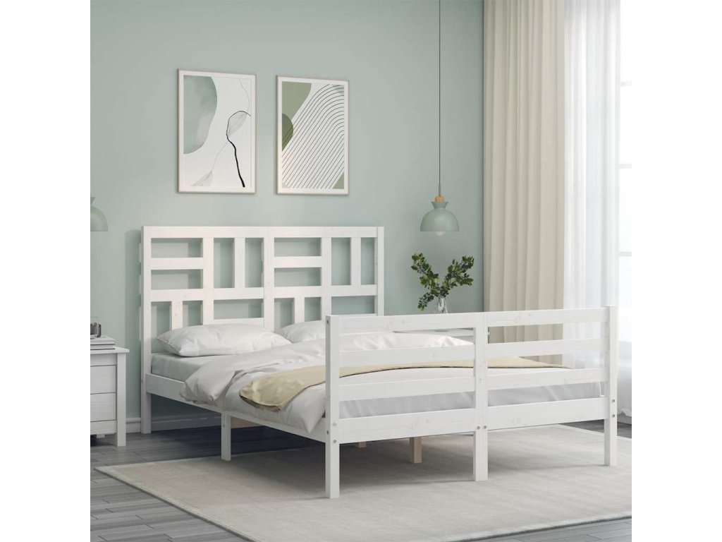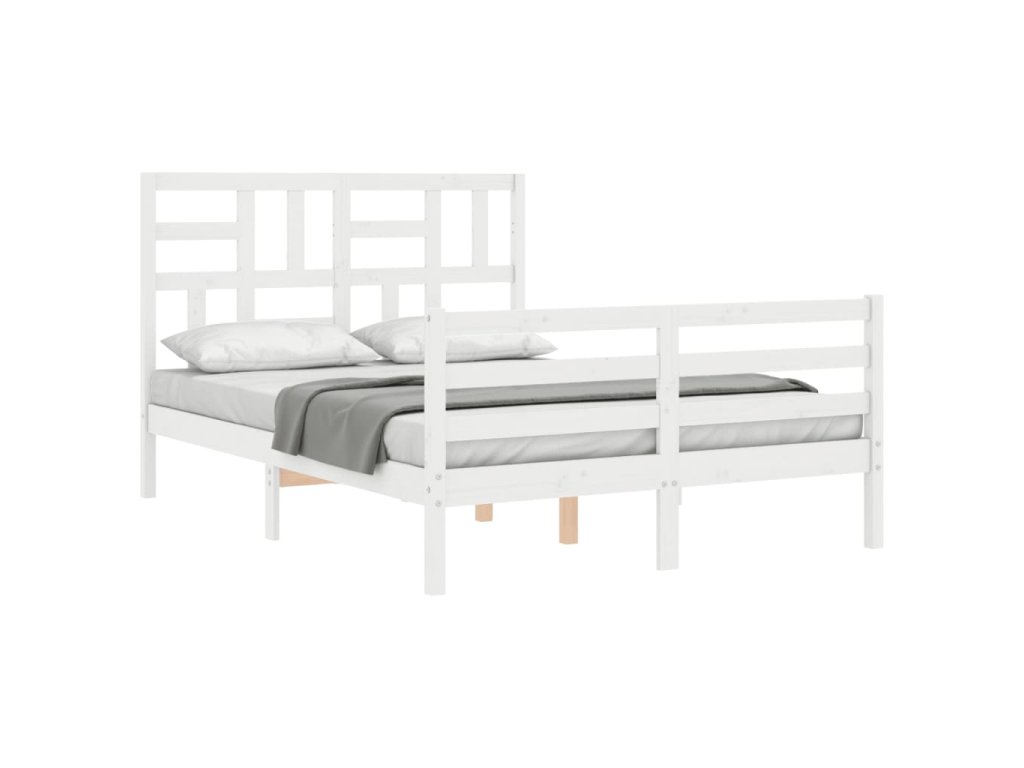 Rám postele s čelem bílý 140 x 190 cm masivní dřevo 3194877