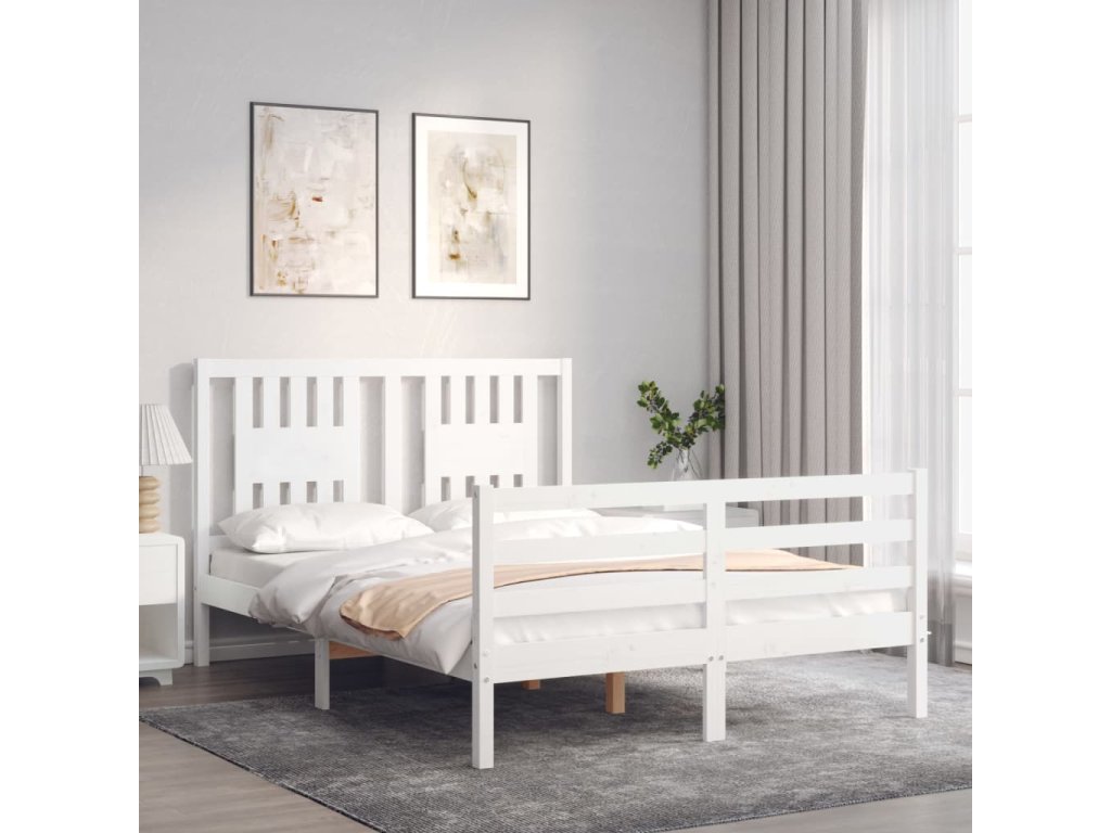 Rám postele s čelem bílý 140 x 200 cm masivní dřevo 3194572