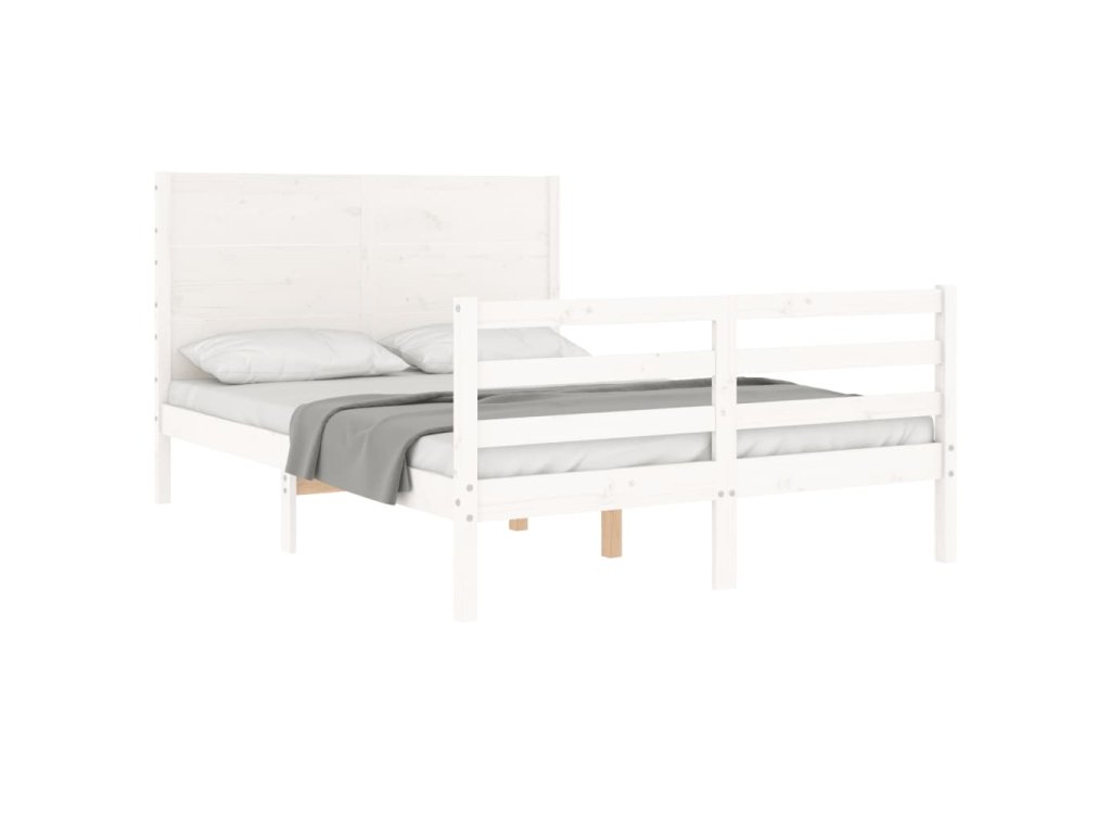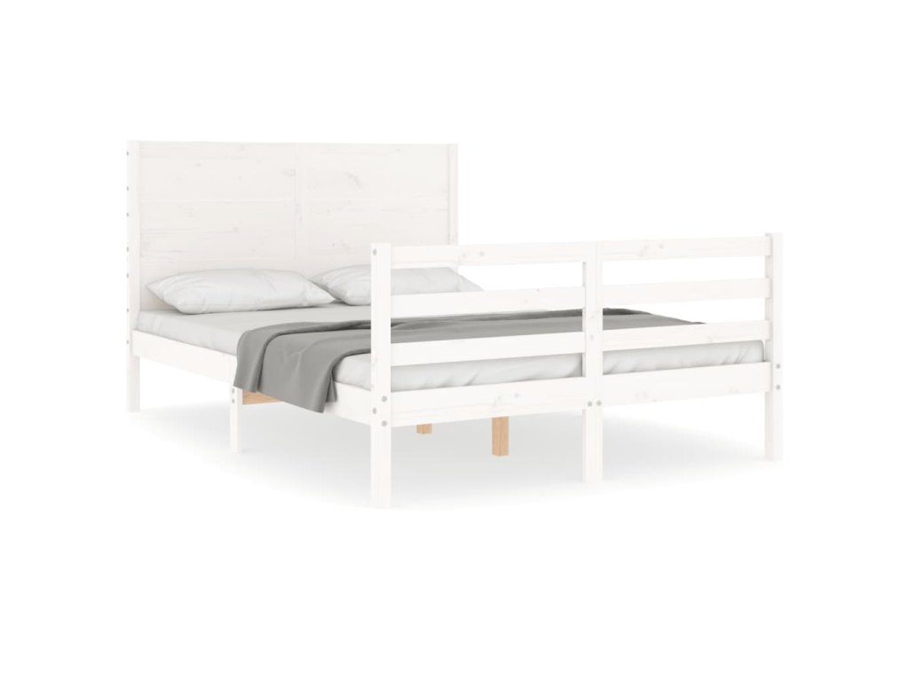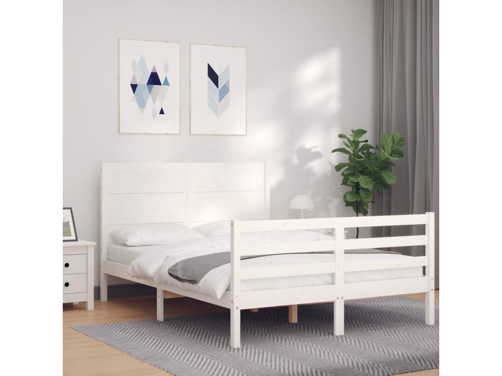 Rám postele s čelem bílý 140 x 200 cm masivní dřevo 3194637