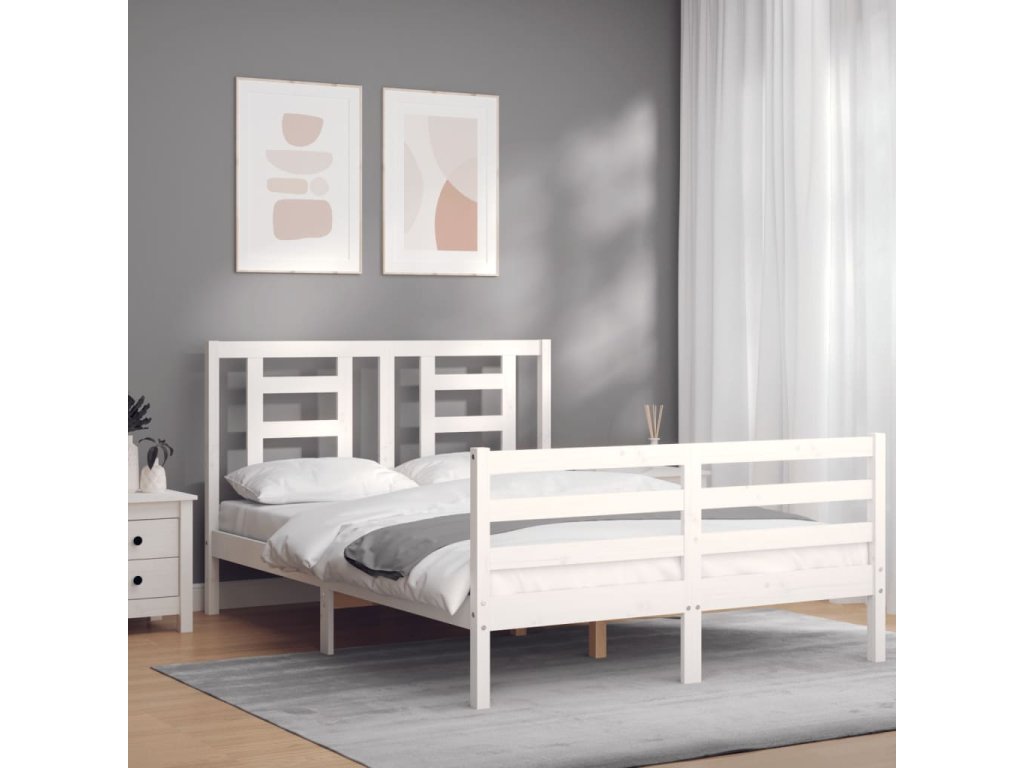 Rám postele s čelem bílý 140 x 200 cm masivní dřevo 3194702