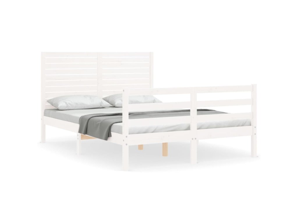 Rám postele s čelem bílý 140 x 200 cm masivní dřevo 3195027