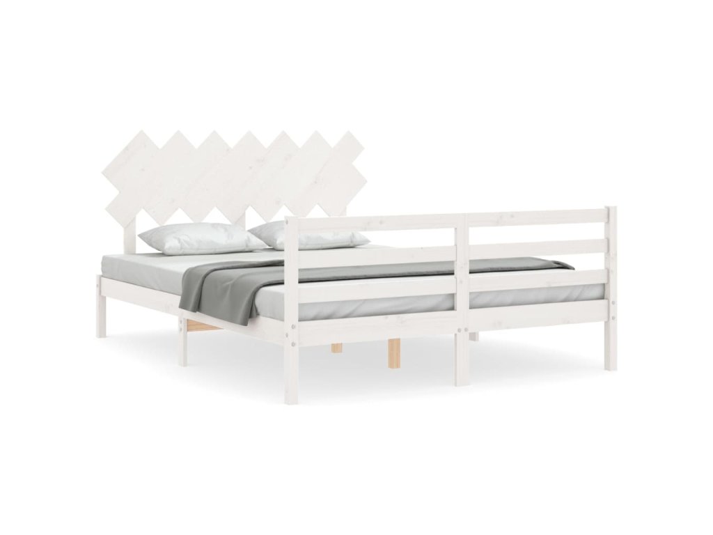 Rám postele s čelem bílý 140 x 200 cm masivní dřevo 3195287