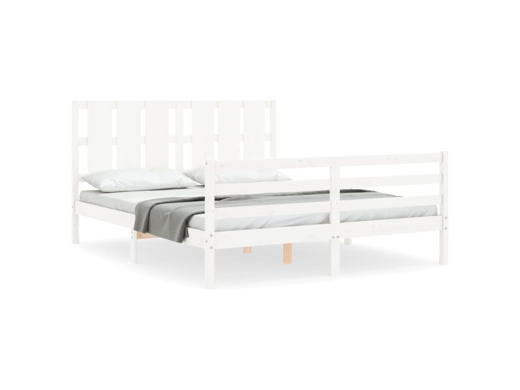 Rám postele s čelem bílý 160 x 200 cm masivní dřevo 3194127