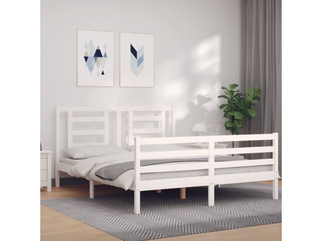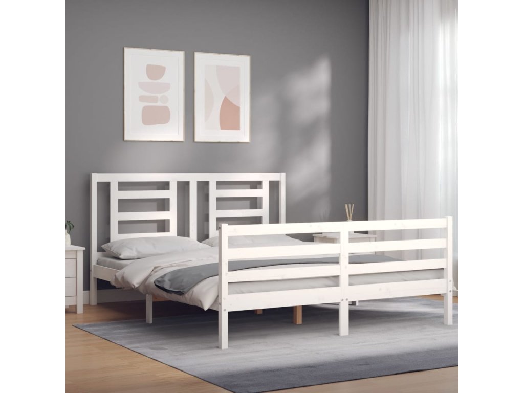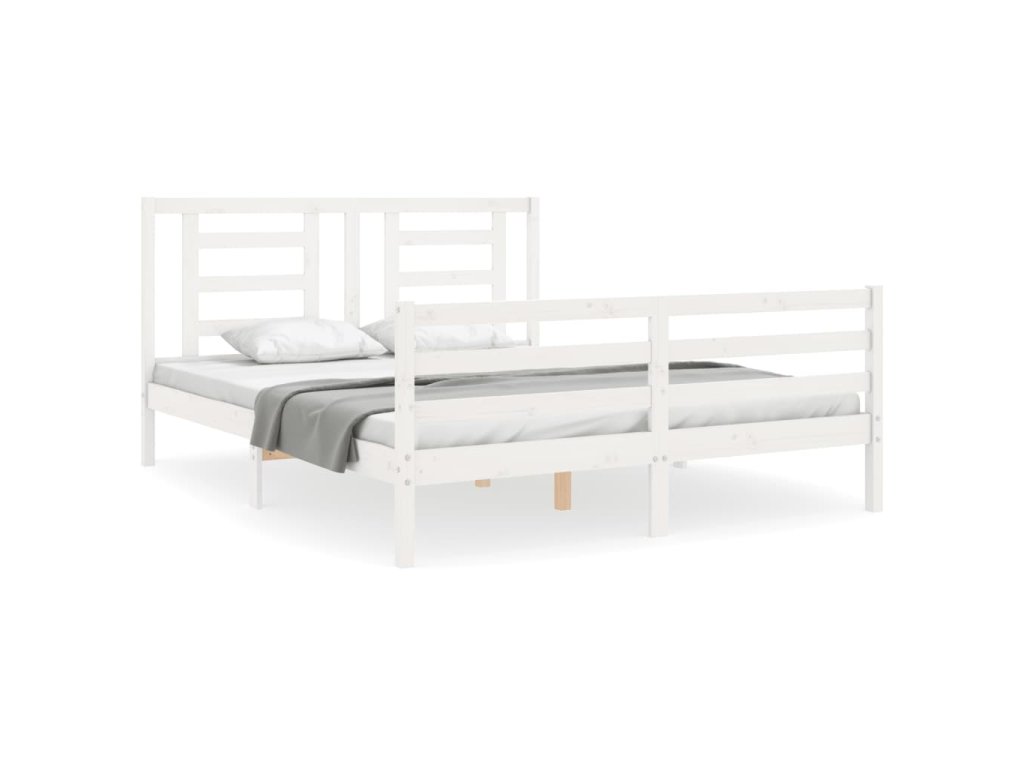 Rám postele s čelem bílý 160 x 200 cm masivní dřevo 3194712