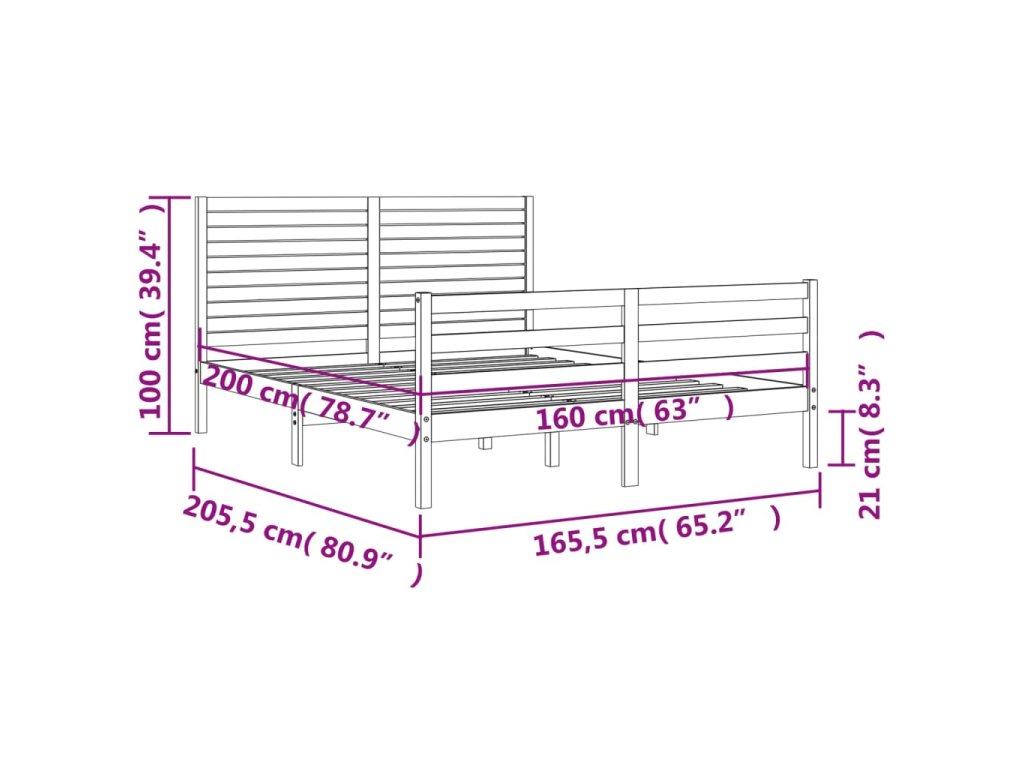 - Celkové rozměry postele: 205,5 x 165,5 x 100 cm (D x Š x V)