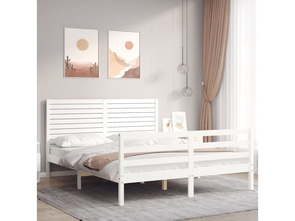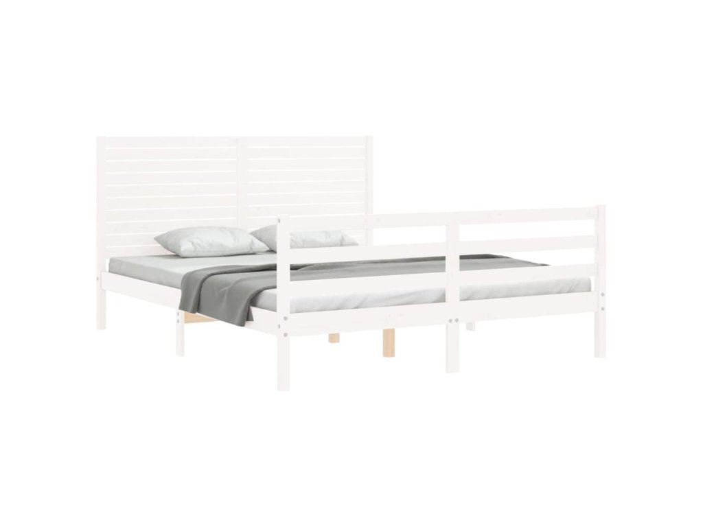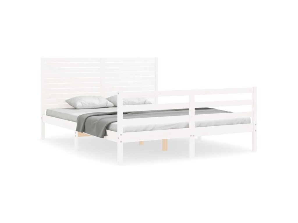 Rám postele s čelem bílý 160 x 200 cm masivní dřevo 3195037