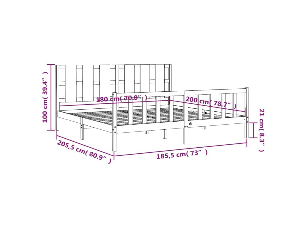 - Celkové rozměry postele: 205,5 x 185,5 x 100 cm (D x Š x V)
