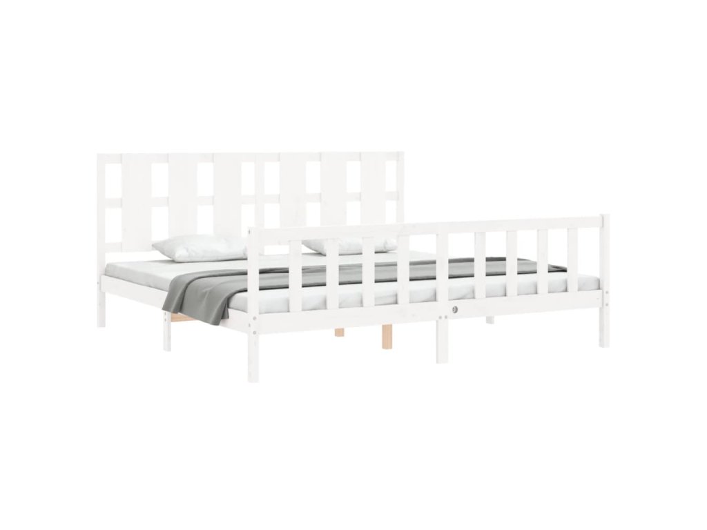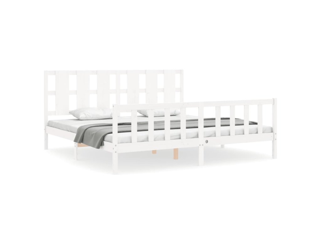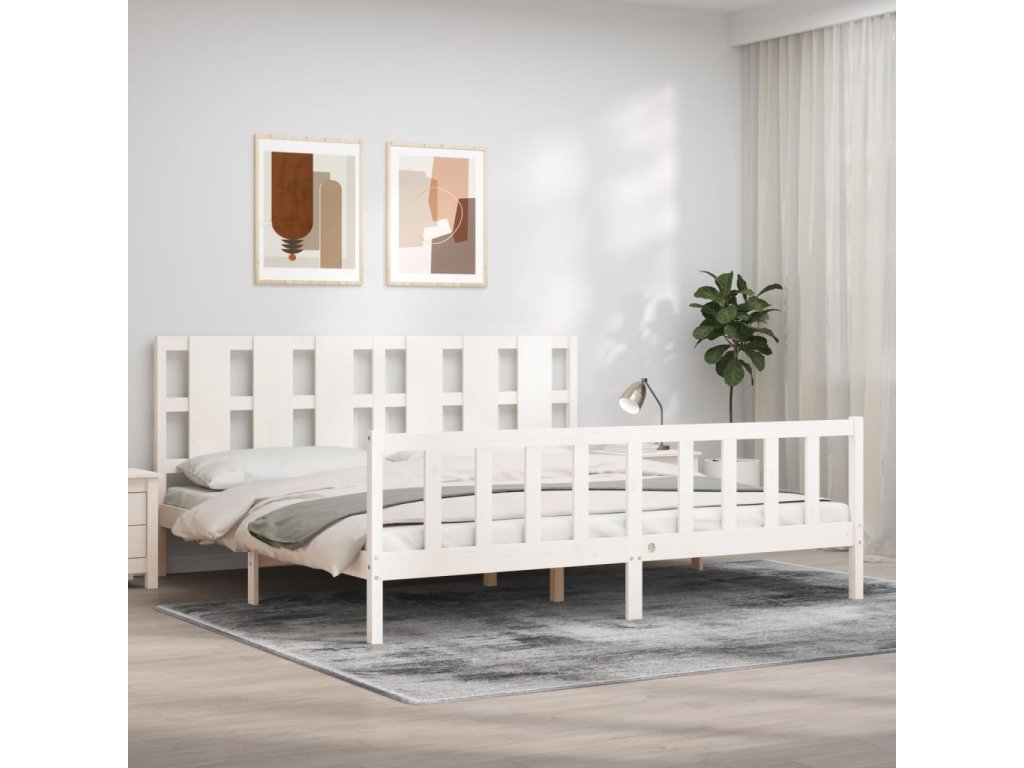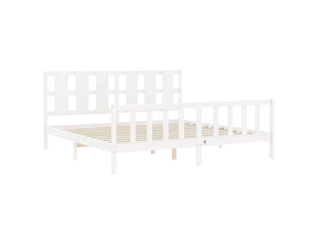 Rám postele s čelem bílý 180 x 200 cm masivní dřevo 3192247